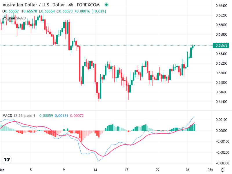 تمكن السعر من الاختراق فوق المقاومة البارزة حول 0.6550 مؤخرًا، مما يشير إلى زخم صعودي.