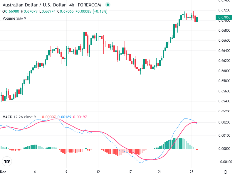قم بمتابعة ظهور تقاطع واضح فوق 0.6720 مع دعم الحجم كتأكيد على زخم صعودي إضافي.