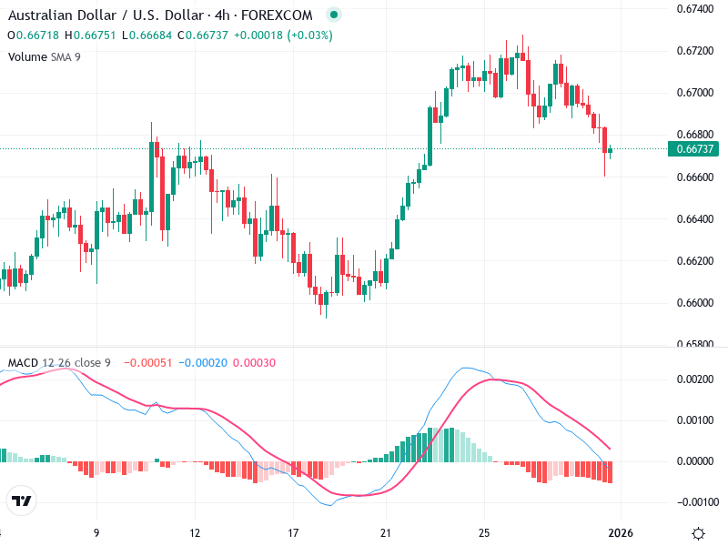 يوضح هذا المخطط زوج AUD/USD على إطار زمني 4 ساعات.