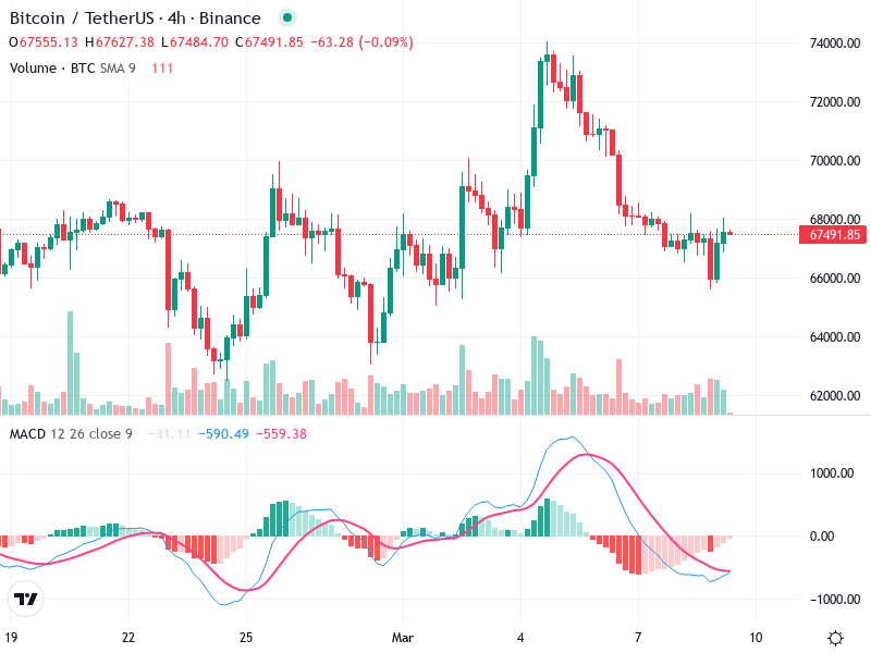 استراتيجية البيع: راقب إشارات الانعكاس الهبوطي تحت مستوى 67000، لأن هذا يمكن أن يشير إلى العودة للانخفاضات السابقة.