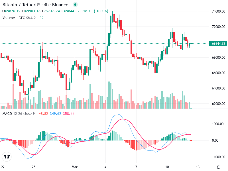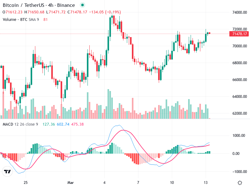 خط MACD أعلى من خط الإشارة، مما يشير إلى تقاطع شرائي.