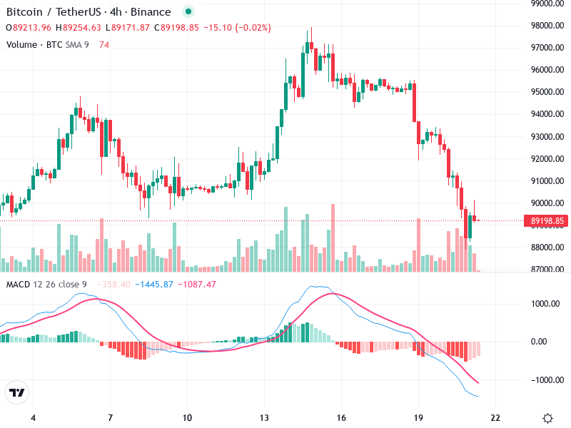 يمكن رؤية الدعم الفوري حول مستوى 88,000، والذي يحتاج إلى الثبات لتجنب المزيد من التراجع.