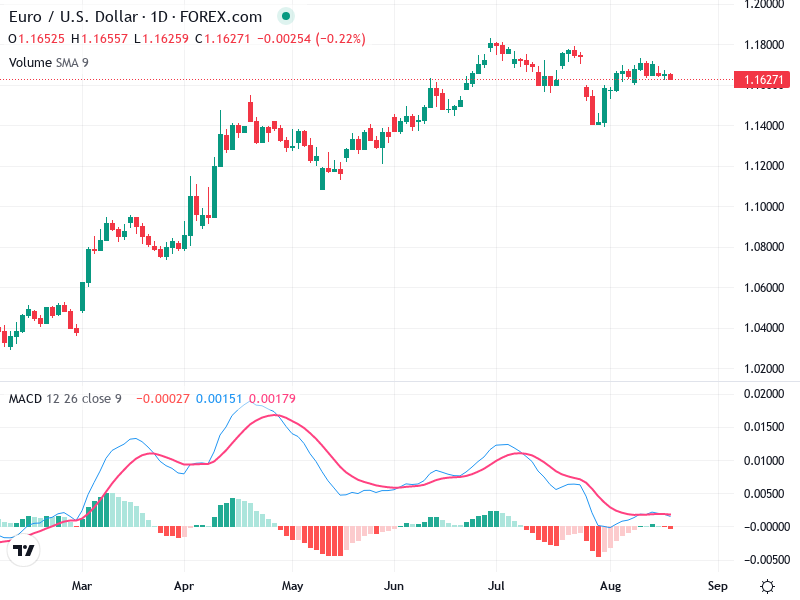 خط MACD أقل بقليل من خط الإشارة، مما يشير إلى شعور هبوطي.