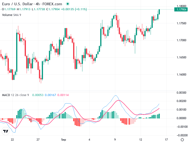 السعر تجاوز مستوى المقاومة 1.17750، مما قد يدل على اختراق محتمل.
