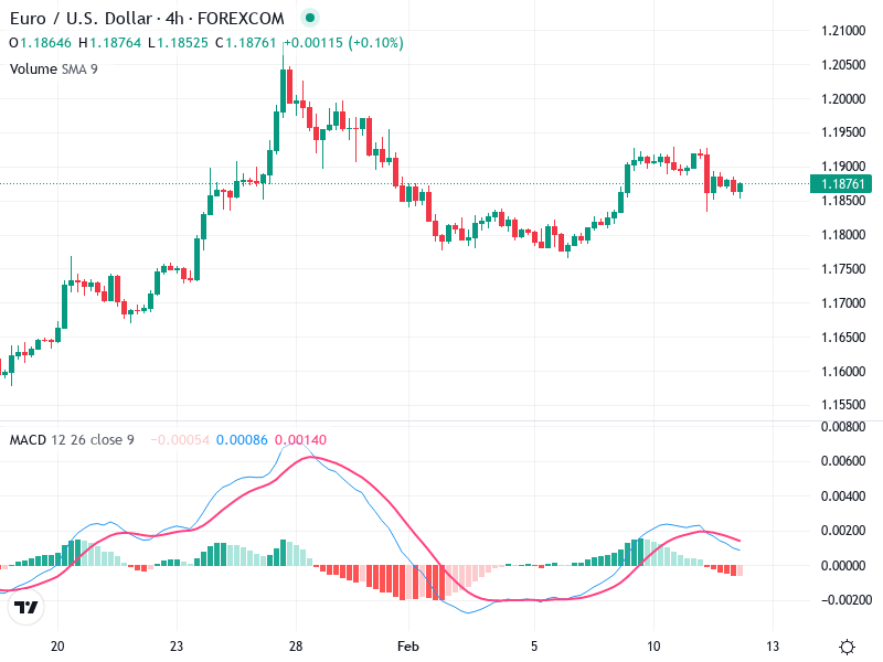 يبدو الاتجاه العام حاليًا جانبيًا بعد اتجاه هبوطي حديث من نهاية يناير إلى بداية فبراير. لا توجد أنماط شموع صاعدة أو هابطة واضحة عند المستوى الحالي ، مما يشير إلى تماسك. تشير الشموع الأخيرة إلى مناطق تراجع محتملة بالقرب من 1.1900 يجب مراقبتها لتحديد الاتجاه المستقبلي.
