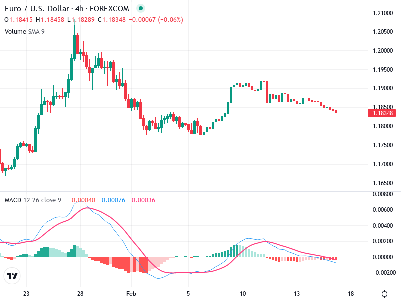 بيع: قد تنشأ فرص البيع إذا كسر السعر مستوى الدعم 1.180، يؤكده زخم MACD الهبوطي.