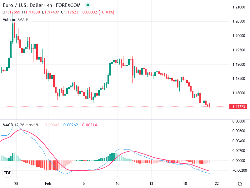 يُظهر الرسم البياني لزوج اليورو/الدولار الأمريكي إشارات هبوطية واضحة.