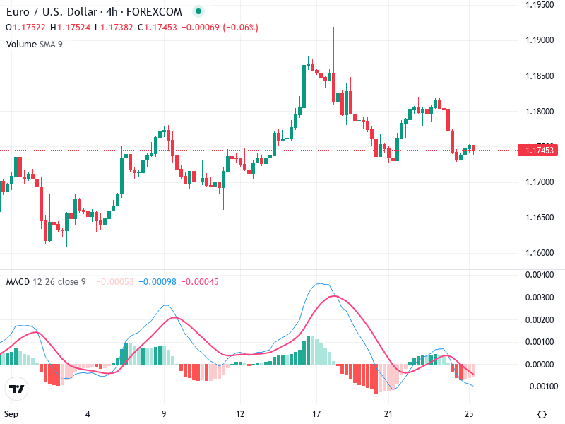 النظر في مركز قصير إذا انخفض السعر تحت مستوى الدعم 1.1700، خاصة إذا كان مصحوبًا بزيادة في الحجم.