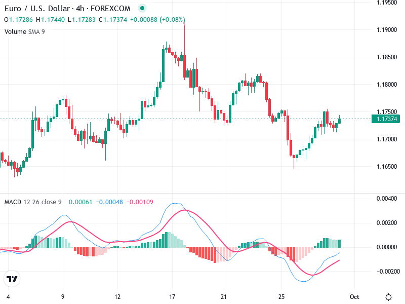 راقب تأكيد الصعود إذا اخترق السعر فوق 1.1750. راقب زيادة الحجم لتأكيد الاختراق.
