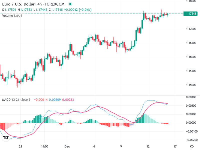 راقب تقاطع MACD أو تباين يمكن أن يشير إلى تغييرات في الزخم. قد تؤكد الاختراق فوق 1.18000 مع دعم الحجم مزيدًا من الشعور الصعودي.