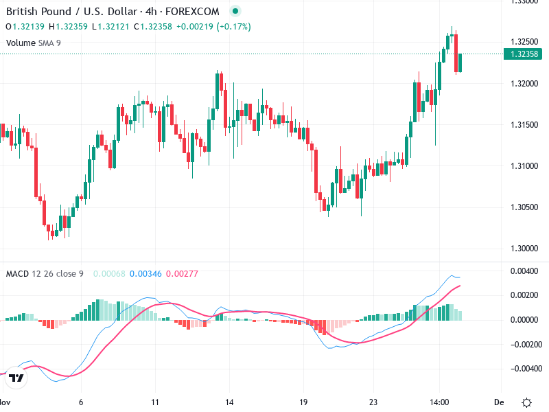 يعمل الحد الأقصى الأخير بالقرب من 1.3250 كمستوى مقاومة. إذا تم كسره بالارتفاع في الحجم، فقد يشير إلى استمرار الاتجاه الصعودي.