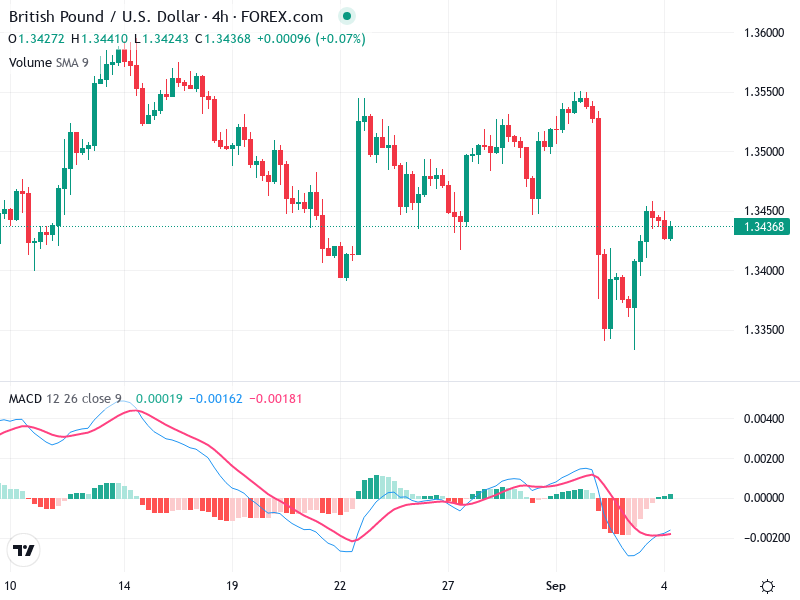 يفضل النظر إلى مراكز الشراء إذا كسر السعر وثبت فوق 1.3450 مع دعم في الحجم وتأكيد من MACD.