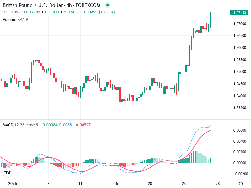 تشير حركة السعر الأخيرة إلى اختراق فوق مستوى 1.3700، مما يؤكد الزخم الصاعد.