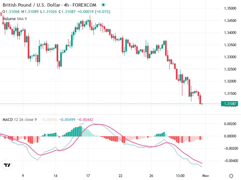 السعر يقترب من منطقة دعم محتملة حول 1.3100، والتي يمكن أن تعمل كحاجز نفسي وقد تؤدي إلى تراجع إذا تدخل المشترون.