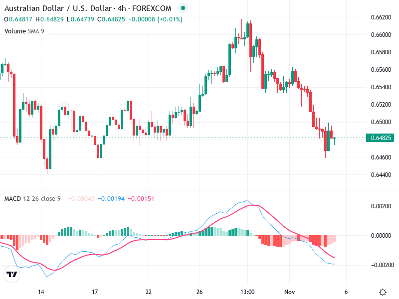 تقع خطوط MACD تحت خط الإشارة، مشيرة إلى زخم هبوطي. يشير التقاطع الحديث إلى استمرار الضغط الهبوطي.