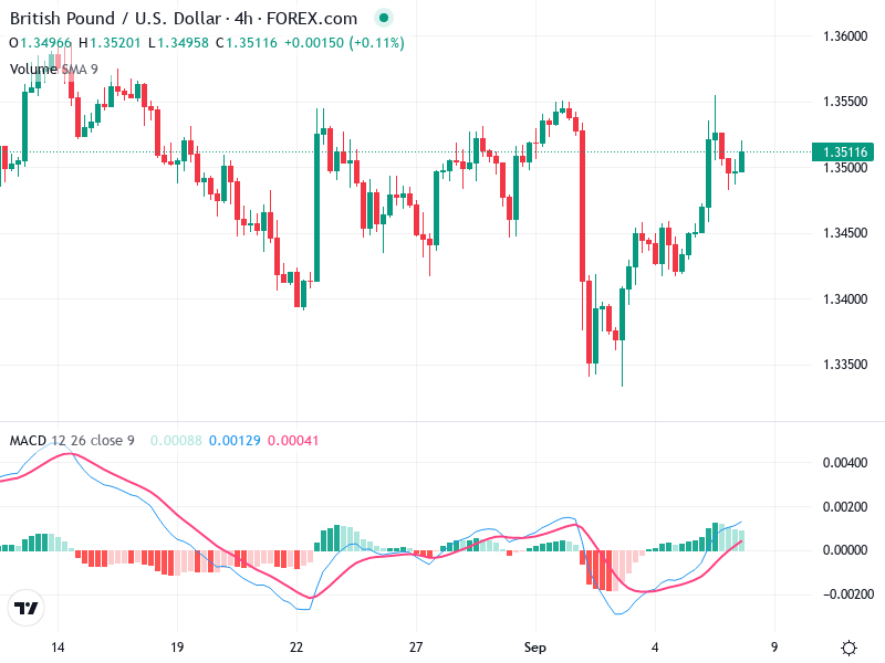 يعرض مخطط GBP/USD لمدة 4 ساعات توجهاً صعودياً ناشئاً.