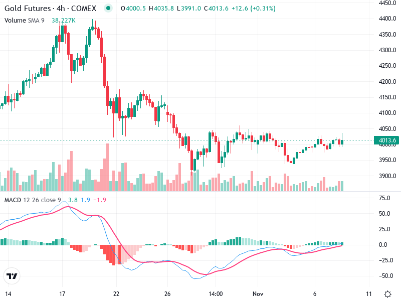 يشير الرسم البياني لذهب الآجلة إلى استقرار محتمل بعد الاتجاه الهبوطي السابق.