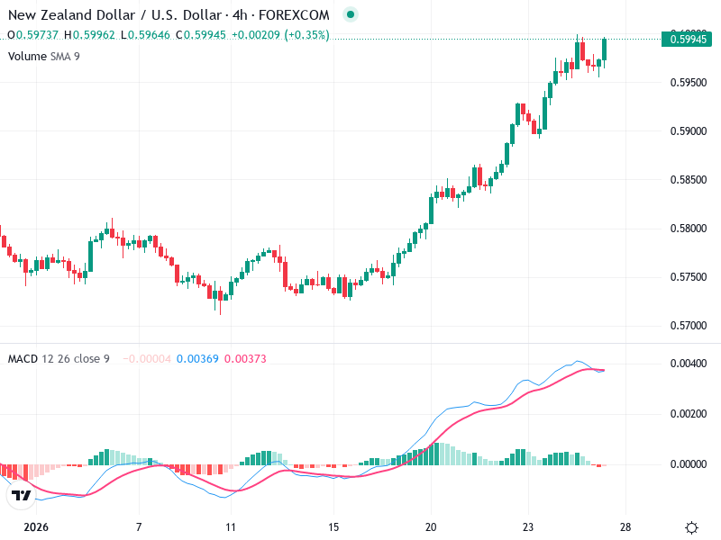 السعر يقترب من مستوى مقاومة مهم عند حوالي 0.5995 حيث كان قد ارتد سابقًا.