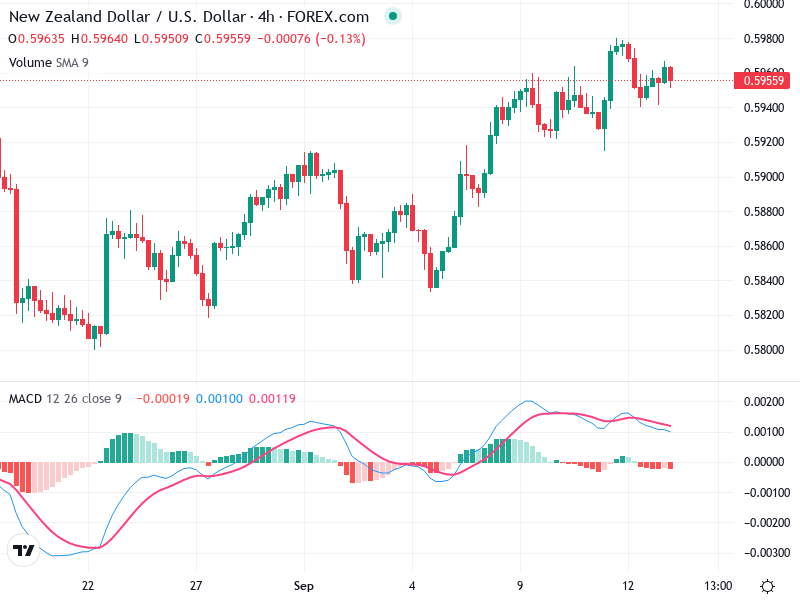النظر في استراتيجية الانتظار أو الانتظار بسبب التوحيد الحالي. راقب اختراق مدعوم بالحجم أعلى من 0.59800 للحصول على فرص شراء محتملة.