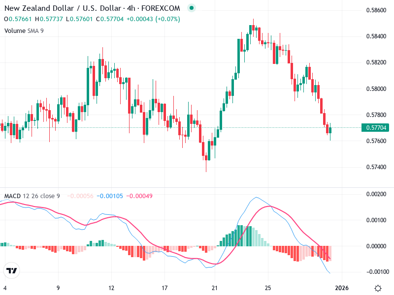 يقع الدعم حول 0.57600، الذي يتم اختباره حاليًا. قد يؤدي كسره إلى مزيد من التراجع.