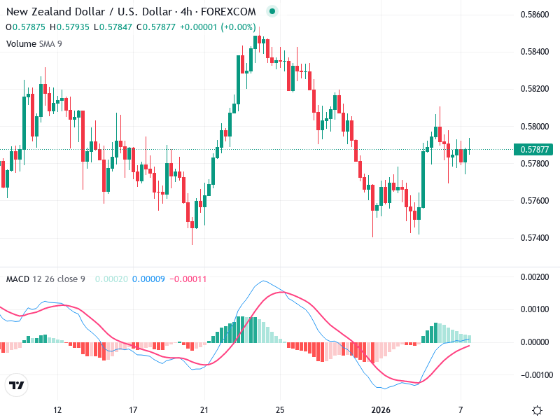 فكر في الشراء عند تأكيد الكسر فوق مستوى المقاومة عند 0.5800 مع حجم متزايد ودعم MACD الصعودي.