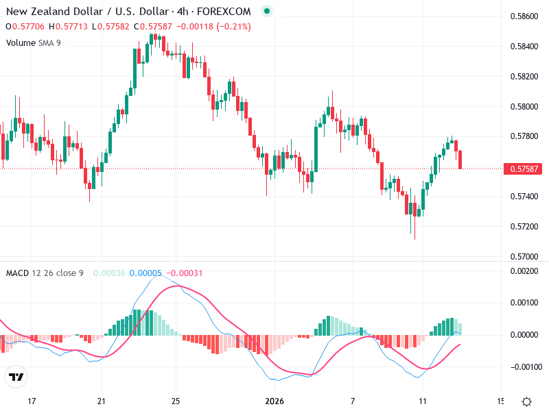 الاحتفاظ بالمراكز ومراقبة التأكيد إذا بقى السعر بين 0.572 و 0.578.