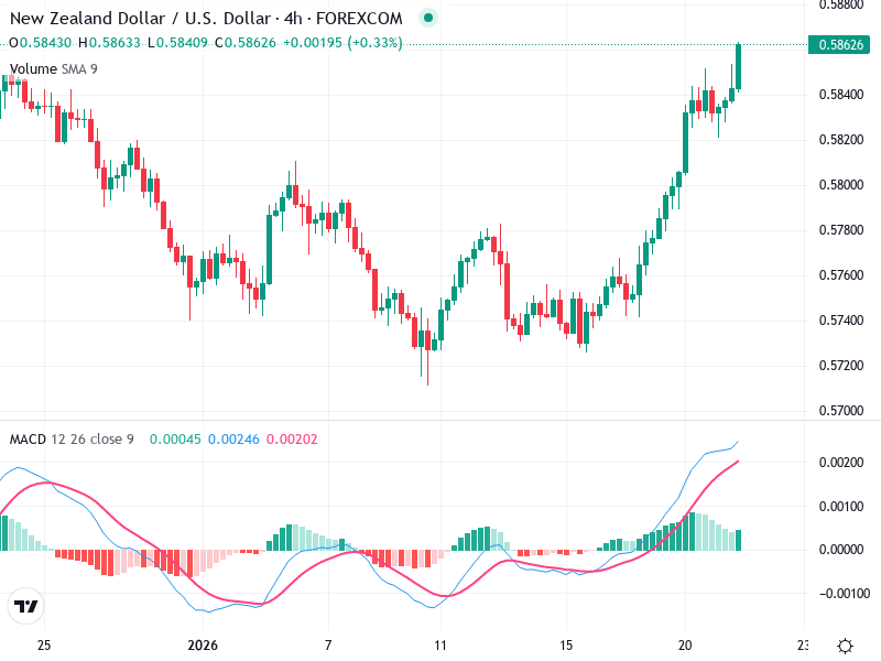 يوضح الرسم البياني للـNZD/USD على إطار زمني 4 ساعات تحولا ملحوظًا في الاتجاه.