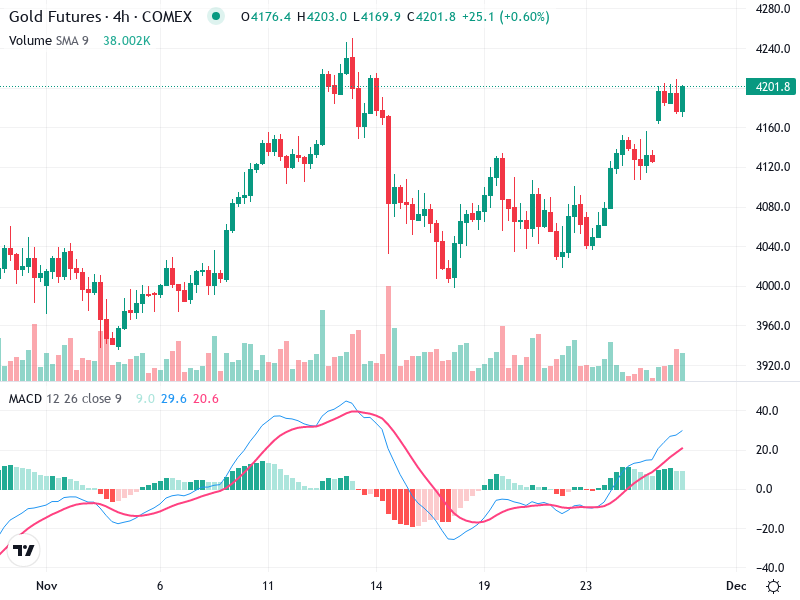 خط الـMACD يقع أسفل خط الإشارة، مشيرًا إلى تقاطع هابط مما يقترح زخمًا بيعيًا متزايدًا.