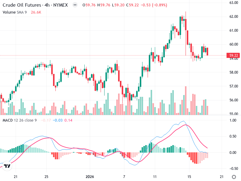 استراتيجية الشراء: دخول مركز قصير إذا لم يتمكن السعر من الاختراق فوق مقاومة 60، بهدف بالقرب من منطقة الدعم عند 58.8.