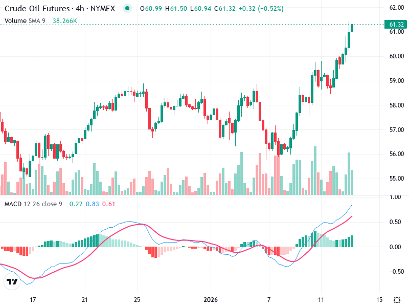 يعرض الرسم البياني لعقود النفط الخام الآجلة اتجاهًا صعوديًا قويًا مع تأكيدات متعددة على الزخم التصاعدي.