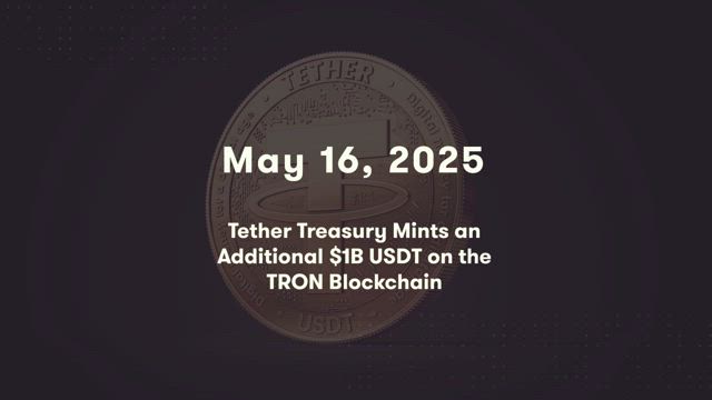 Technical Analysis Videos361 Tether Treasury Mints an Additional $1B USDT on the TRON Blockchain Ross May 16, 2025