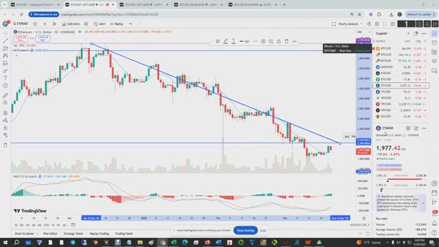 Technical Analysis Videos392 ETH/USD Approaching Downtrend Line Ross March 20, 2025 cryptoETH/USDTechnical Analysis
