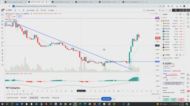 Technical Analysis Videos380 ETH/BTC Breaking Above Downtrend Line Ross May 14, 2025 cryptoETH/BTCTechnical Analysis