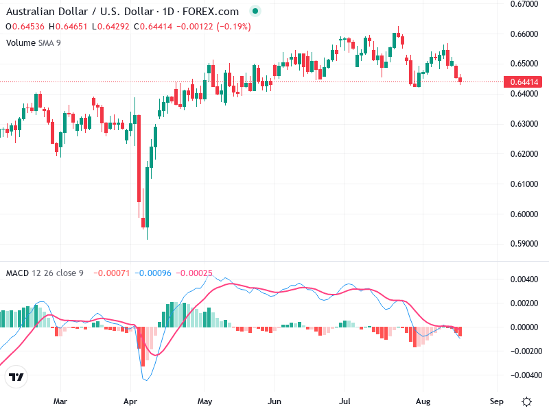 The price nearing the 0.6400 range marks a pivotal support area, with a potential breakout below this level indicating further downside movement.