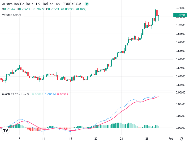 Consider buying on pullbacks near the 0.7000 support level if the bullish trend continues.