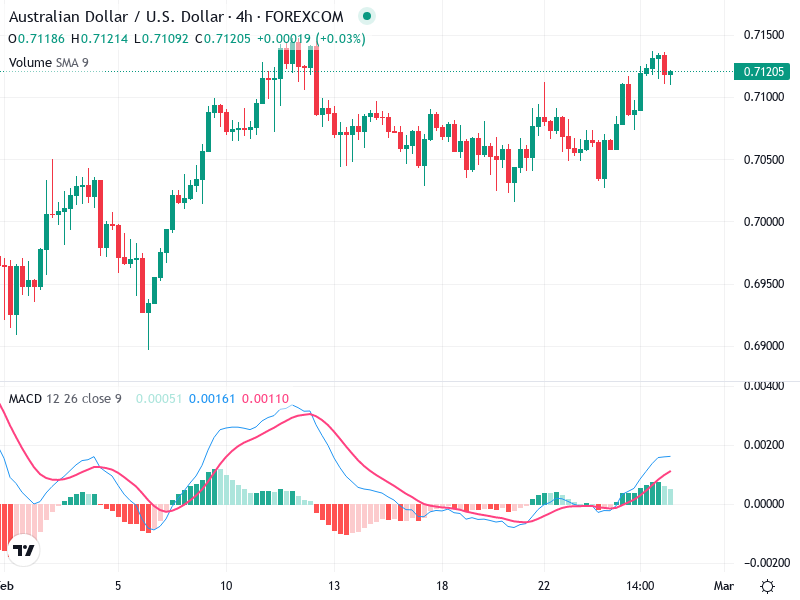 Immediate resistance is near 0.7150, and breaking this level would suggest further bullish continuation.