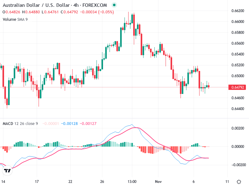 Currently, the trend appears sideways with prices consolidating around the 0.648 level.