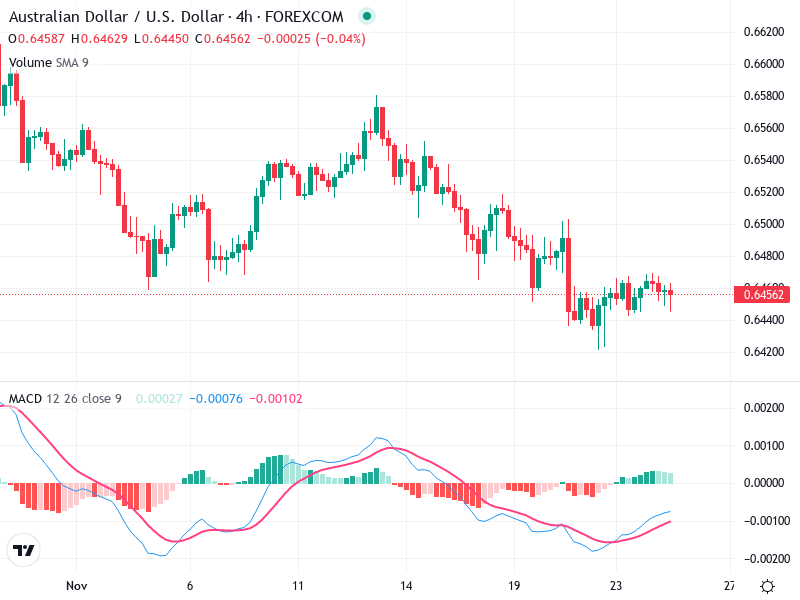 The AUD/USD 4-hour chart is currently in a consolidation phase.