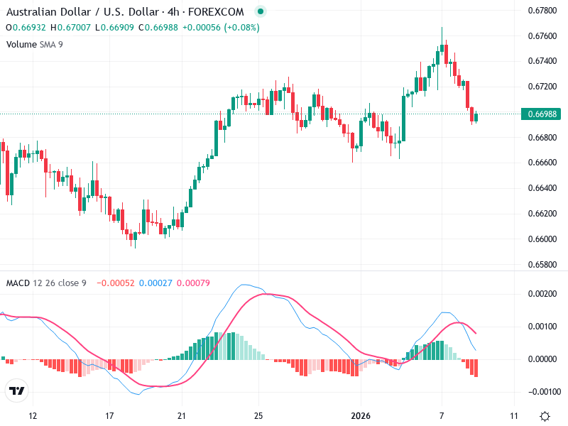 The AUD/USD chart reveals significant technical indicators suggesting a shift in market sentiment.