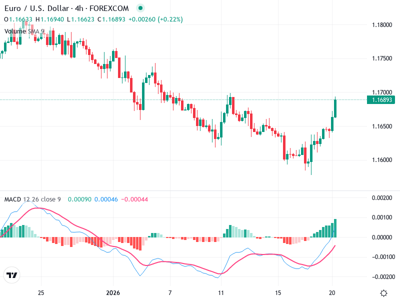 Recent price action suggests a breakout above the 1.1650 level, which had acted as resistance.