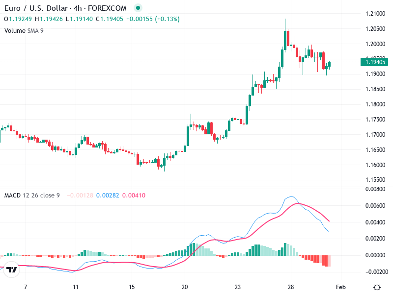 It is crucial to watch for confirmation of support at 1.1900 and potential bullish signals like a MACD crossover or bullish candlestick patterns.