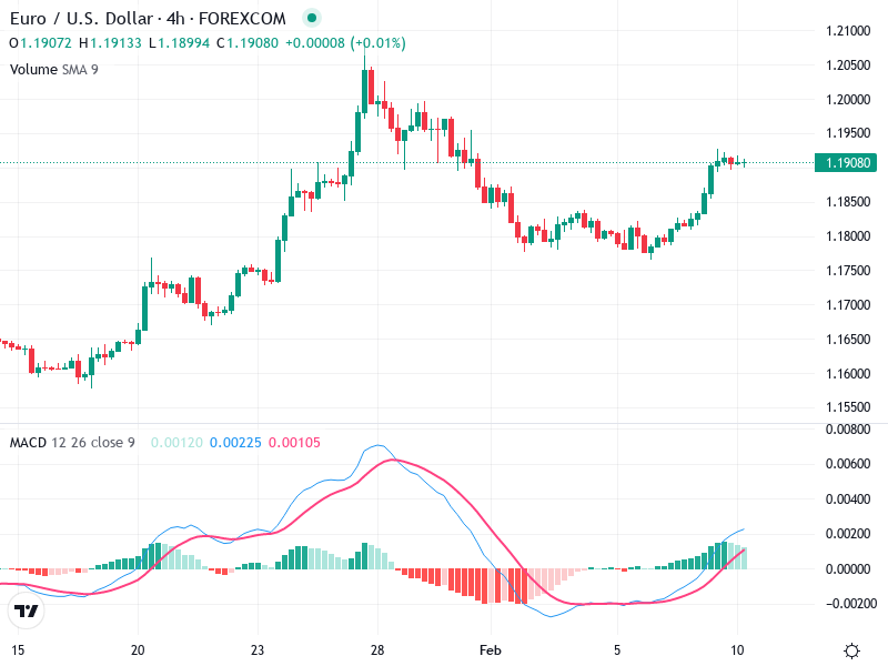 The chart for initially displays a bullish trend with a pronounced upward movement before reaching a peak. Subsequently, a bearish reversal is observed. Key support and resistance levels are identified at 1.1750 and 1.1950, respectively.