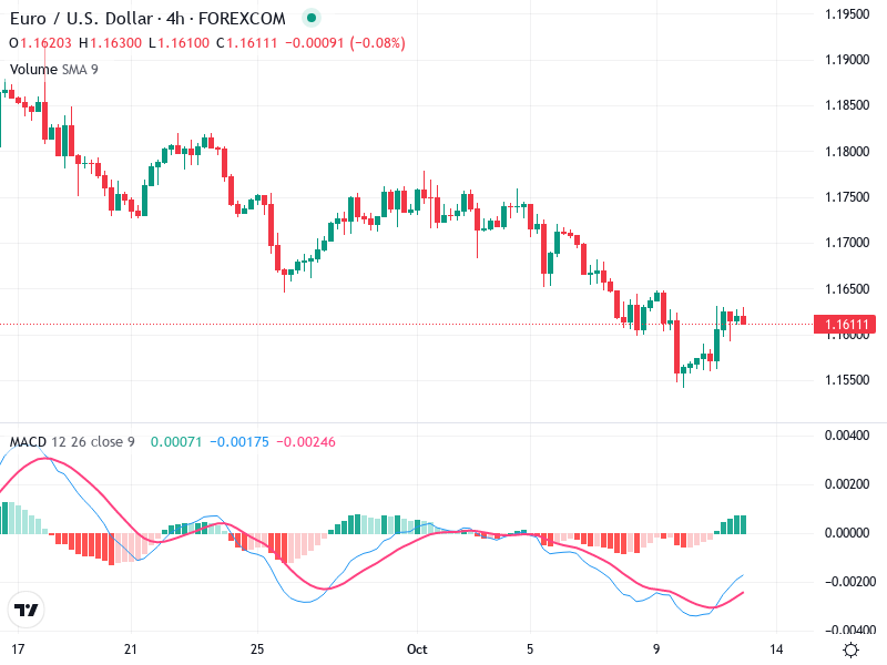 The EURO / U.S. Dollar chart over a 4-hour period shows notable patterns and indicators providing insights into its recent performance. The observed trends and indicators suggest potential bullish momentum, making it crucial to monitor key resistance and support levels.