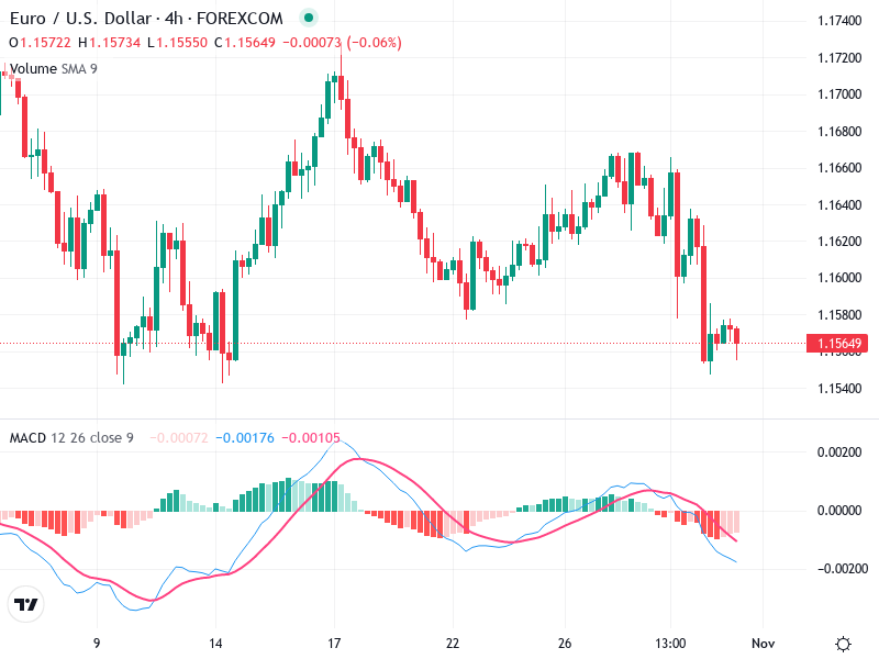 A move above 1.1600 could counter the bearish outlook, suggesting an upward correction potential.