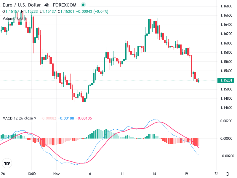 Look for signs of reversal at the 1.1500 support. Confirmation from MACD or a bullish candlestick pattern could signal a shift in momentum.