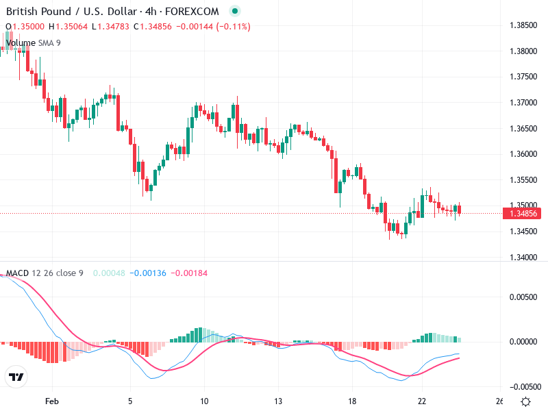 Consider entering a long position if the price breaks above the 1.3550 resistance with increased volume and MACD showing stronger bullish momentum.