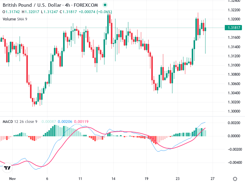 The GBP/USD pair is currently exhibiting a bullish trend on the 4-hour chart. Recent technical indicators support the upward momentum observed in the pair.