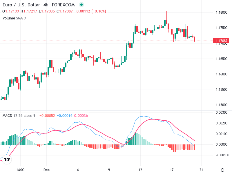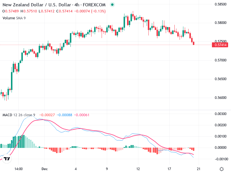 The histogram shows decreasing bullish momentum as it approaches the zero line from above.