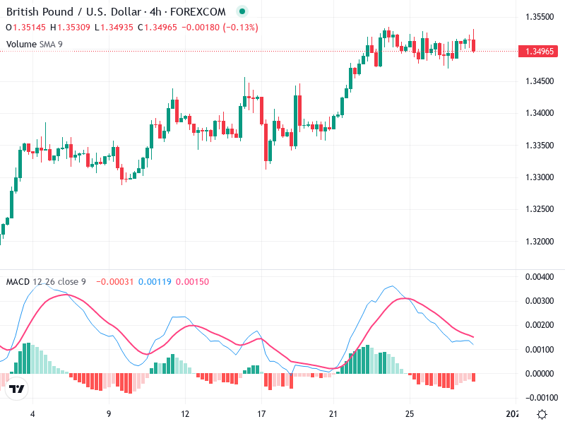 The GBP/USD 4-hour chart presents an interesting technical scenario with mixed signs. While the overall trend shows bullish characteristics with higher highs and lows, certain indicators suggest caution. The asset faces resistance near 1.3550, a pivotal point for future movements.