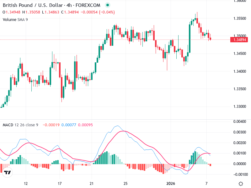 Consider entering long positions if the price holds above the 1.3500 support with an increase in volume and positive MACD momentum.